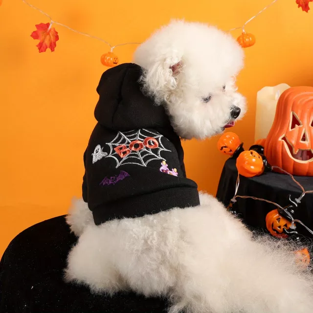 Halloween Spider Web Pet Hoodie with Pumpkin Embroidery